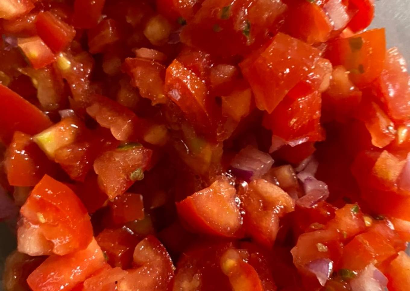 - Mélanger les tomates et les oignons avec un pincé sel et le piment