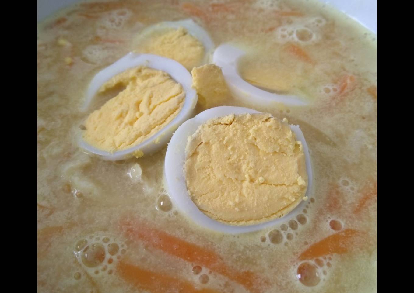 - Ajouter ensuite le bouillon, le lait de coco, le poisson, les carotte, le jus de citron.